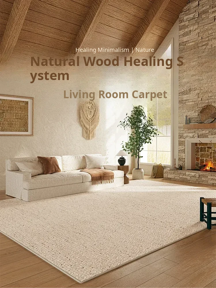 2026 New Minimalist Wool Carpet for Living Room - Waterproof, Easy-Clean, Luxurious Solid Color Bedroom Rug for Bedside