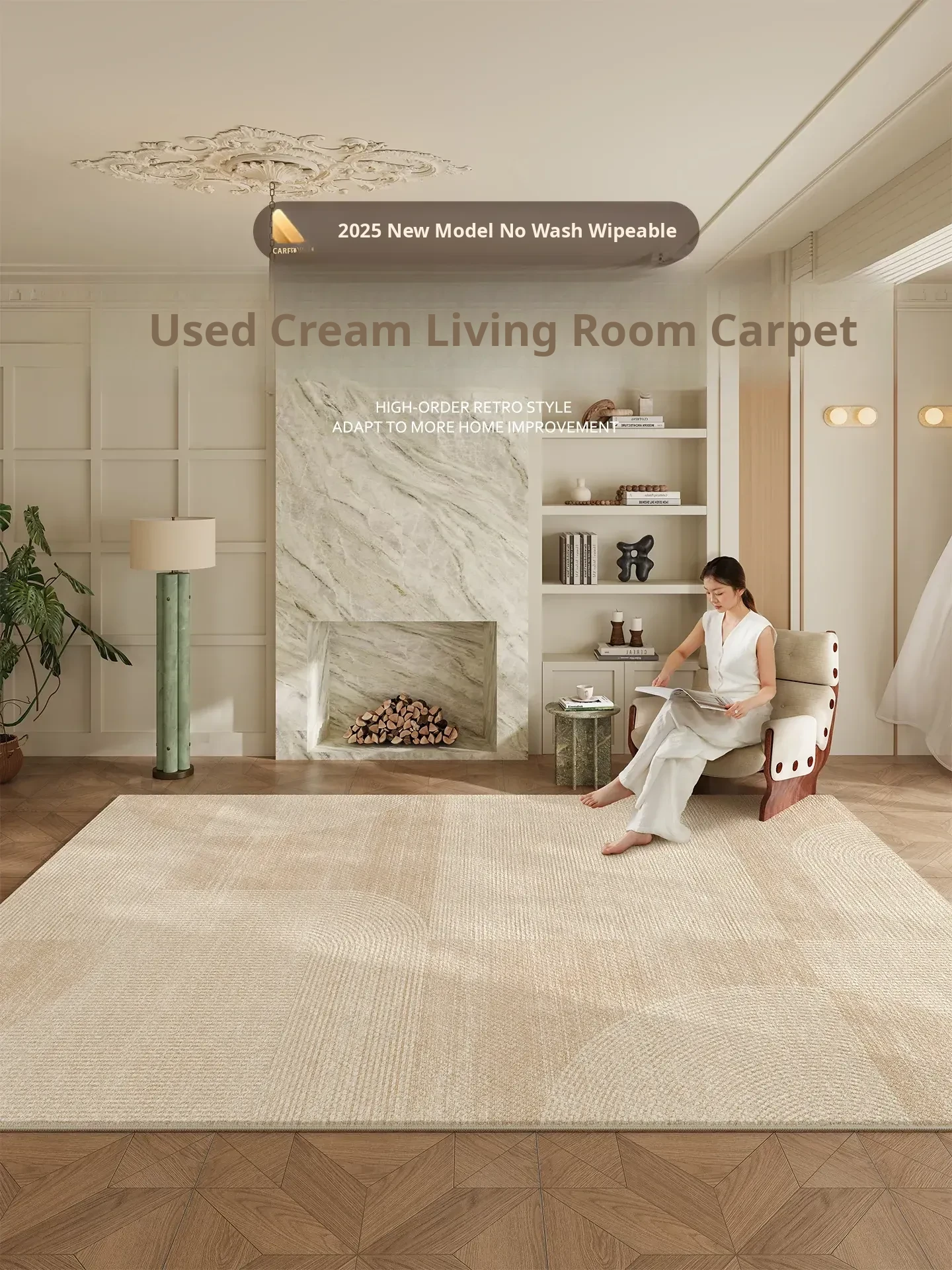 2026 New Luxury Soft Cream Waterproof Area Rug for Living Room and Bedroom – Easy-Clean, No Wash, Stylish Home Decor for Modern Spaces