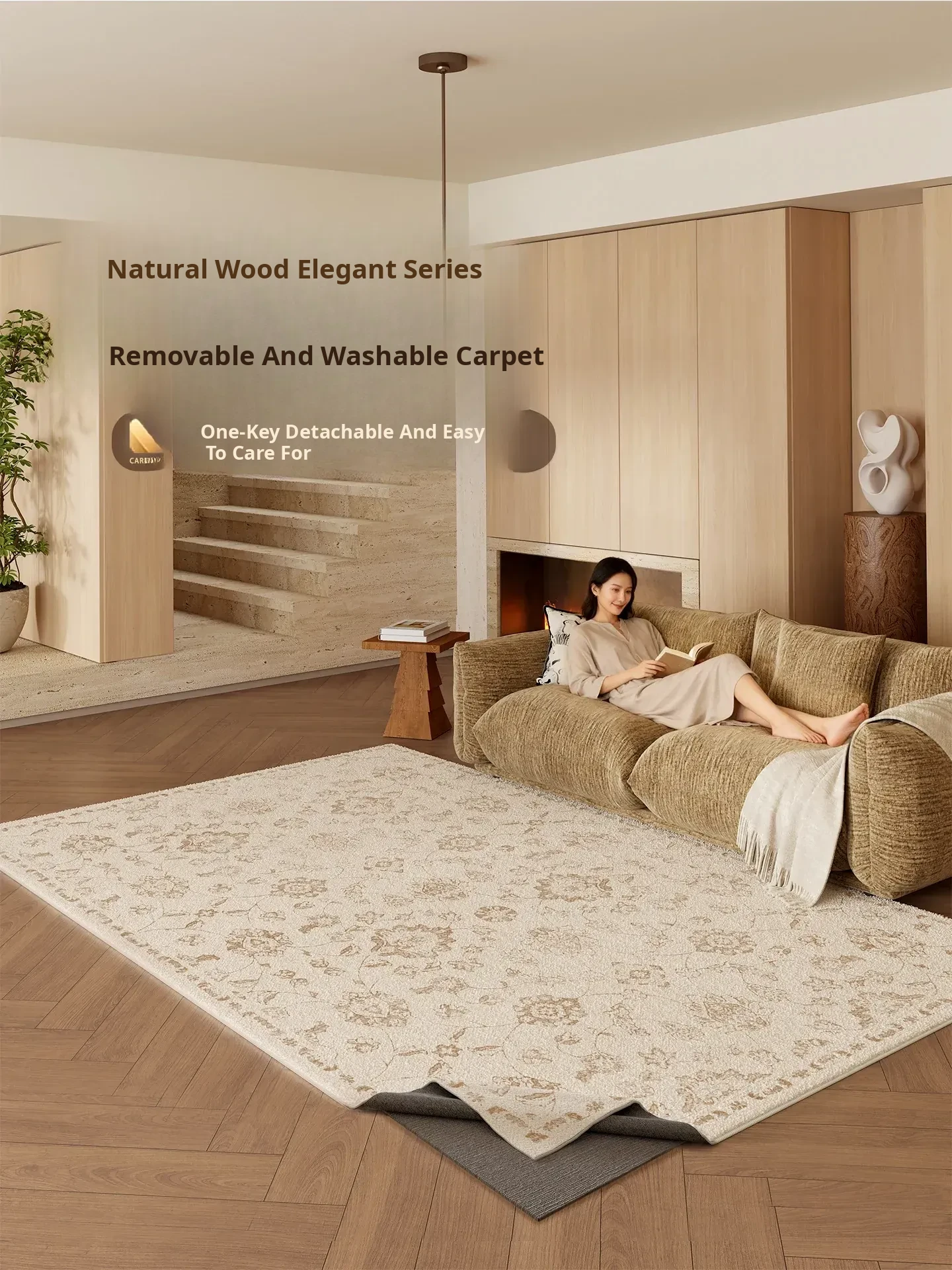 2026 New Vintage-Inspired Luxury Removable & Washable Carpet for Living Room - Soft Foldable Bedside Rug, Machine Washable Sofa Blanket