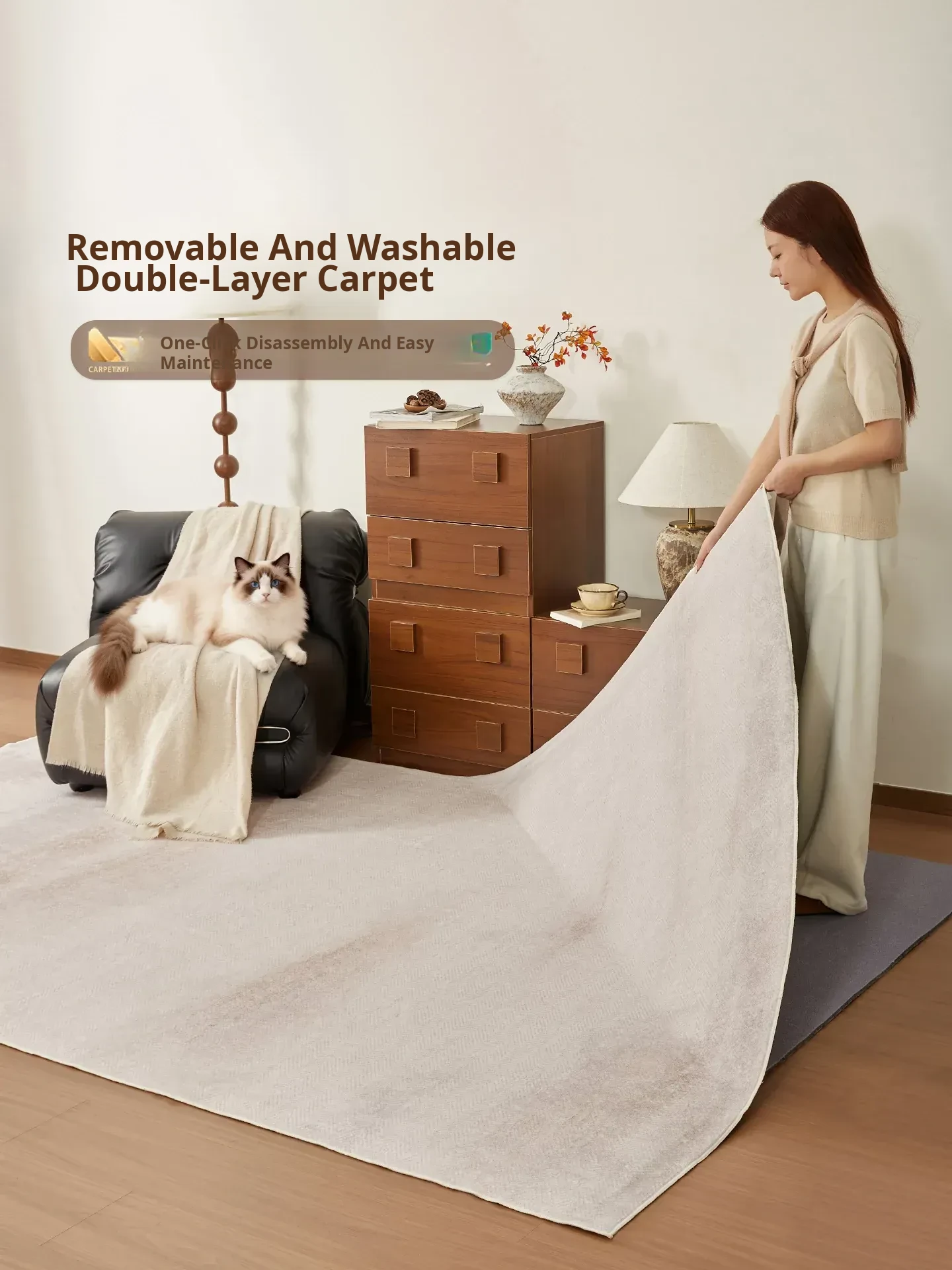 2026 New Luxury Double-Layer Washable Carpet for Living Room - Easy to Clean, No Maintenance Needed, Perfect for Bedroom and Living Room Décor
