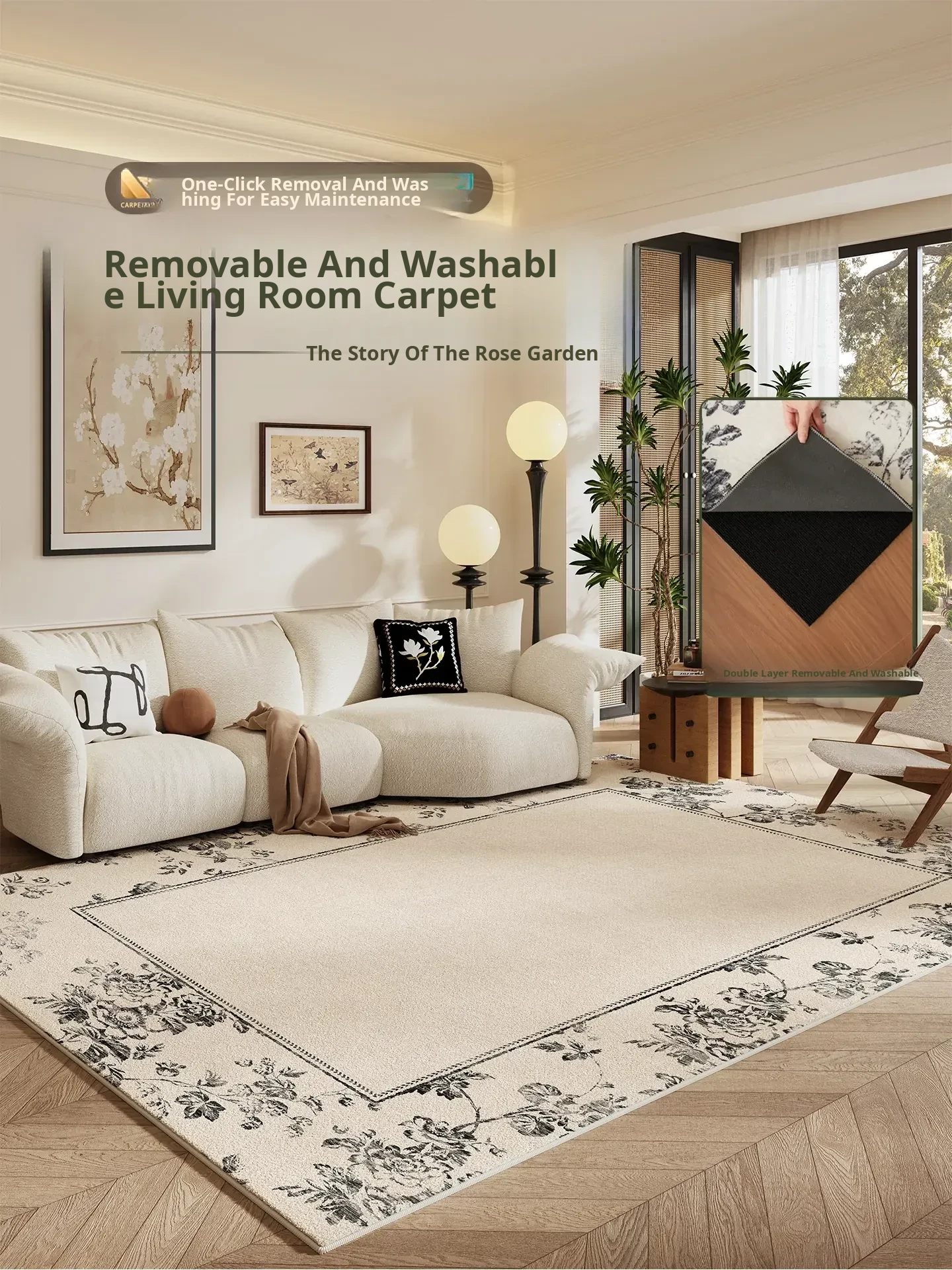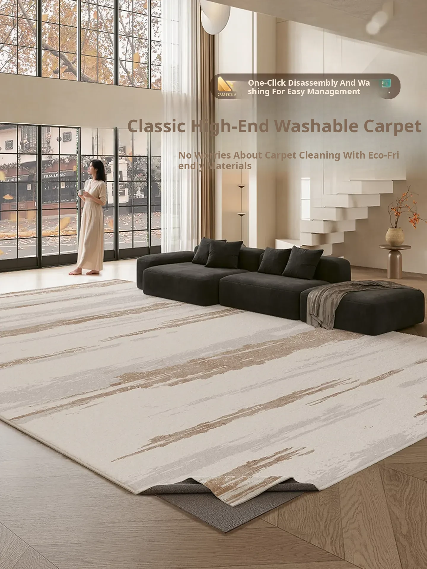 2026 New Luxury Washable Carpet for Living Room - Removable, Foldable, and Easy to Care for Bedroom Mat, Machine Washable for Ultimate Convenience and Style