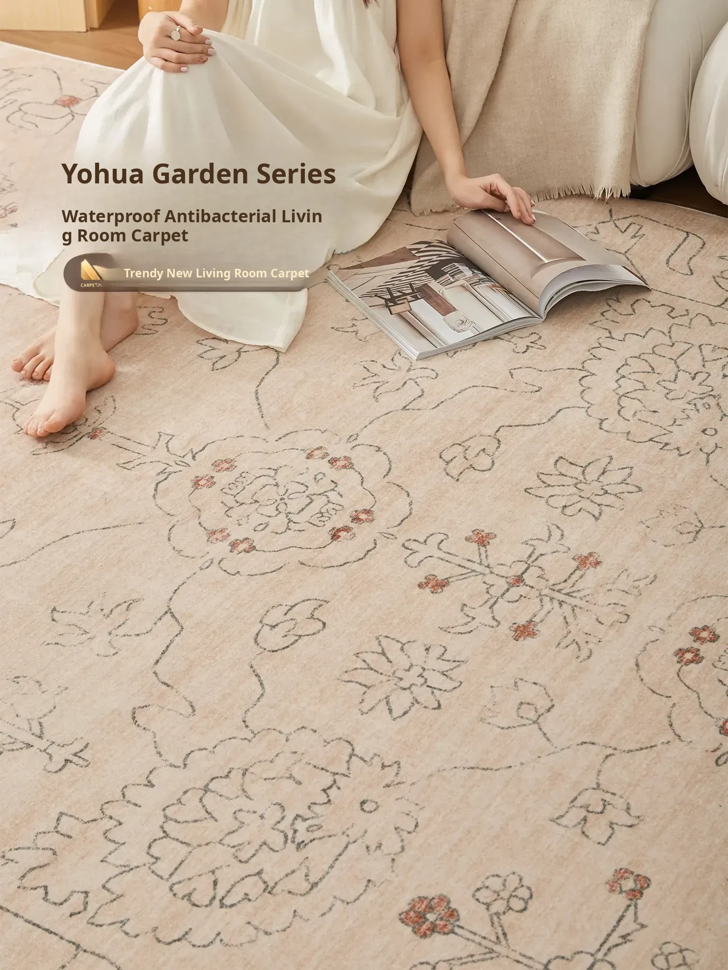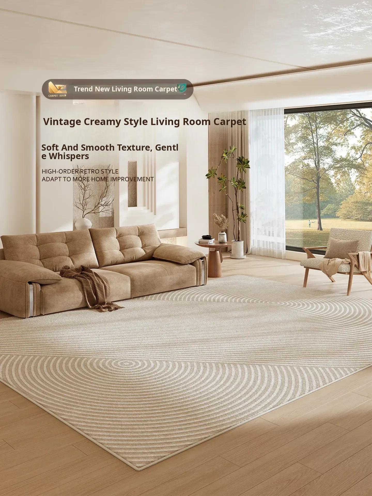 2026 New Luxurious Living Room Carpet - Easy-Clean, Waterproof, Stain-Resistant Bedroom Mat in Cream Style for Home Use