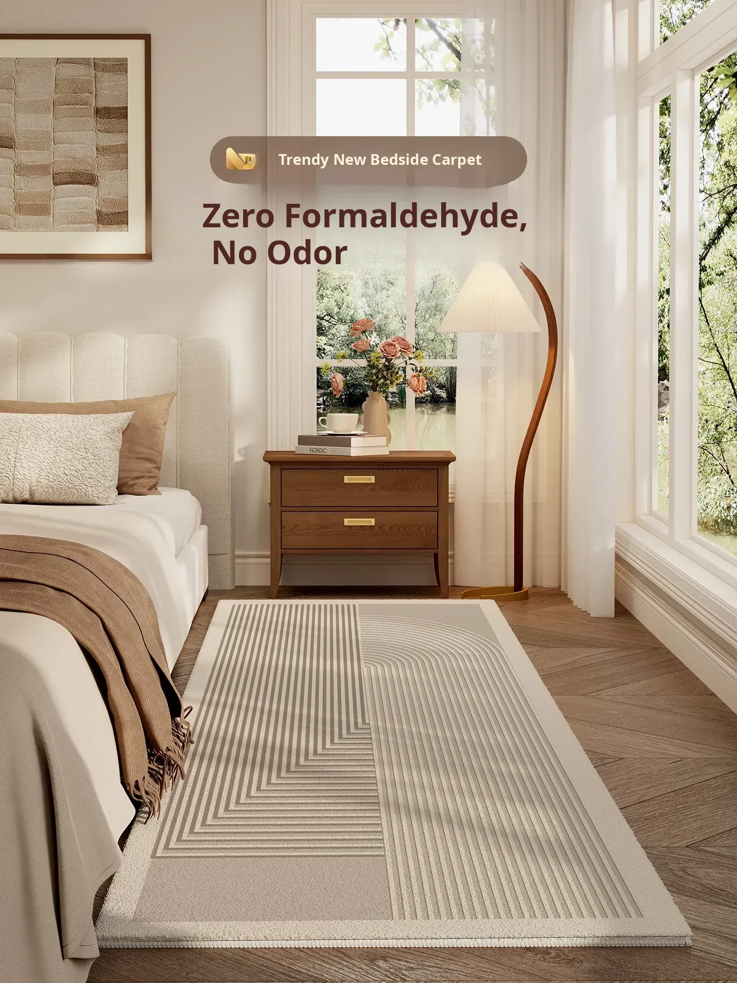 2026 New Japanese Wabi-Sabi Style Bedroom Area Rug - Waterproof, Easy-Clean Bedside Carpet for a Cozy Room Experience