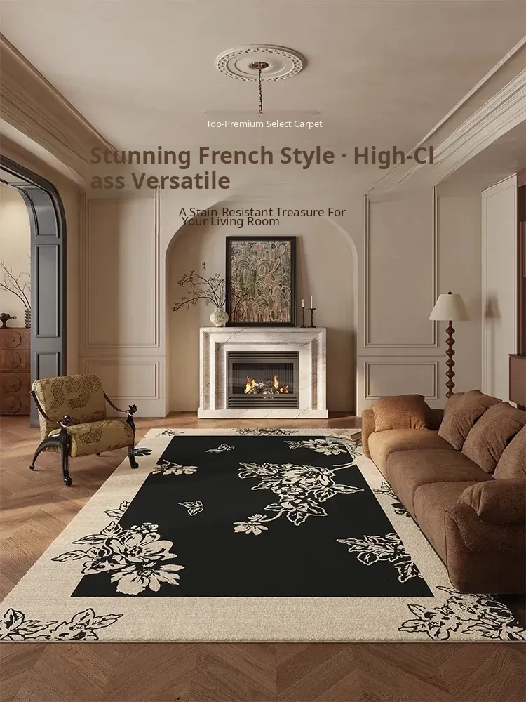 Vintage French Style Waterproof and Stain-Resistant Rug for Bedroom and Living Room, Easy to Clean Non-Washable Carpet for Bedside, Sofa, and Coffee Table - Luxurious and Elegant Home Décor