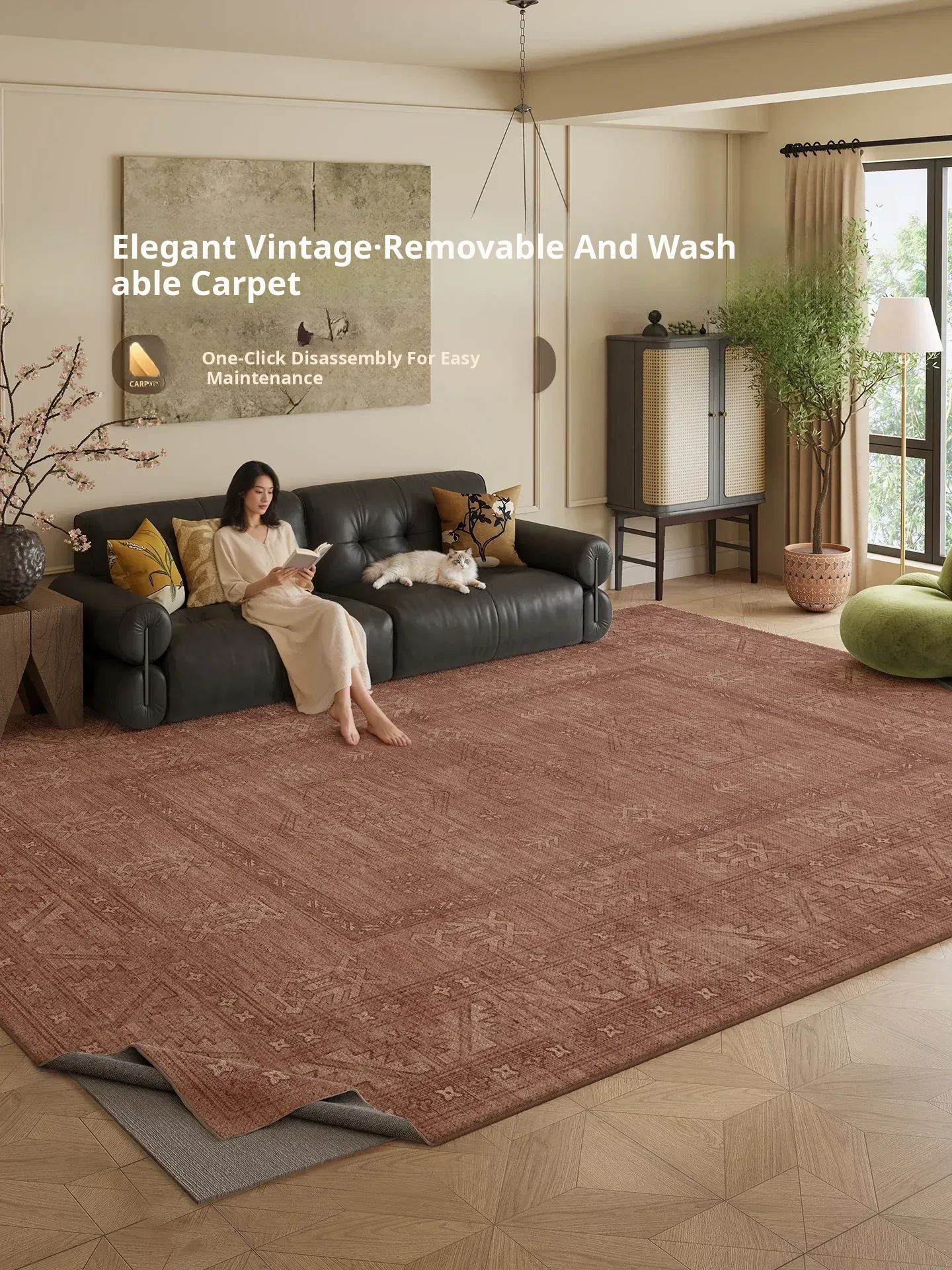 2026 New Vintage Removable and Washable Carpet for Living Room - Foldable, Low-Maintenance Area Rug for Bedroom and Home Decor