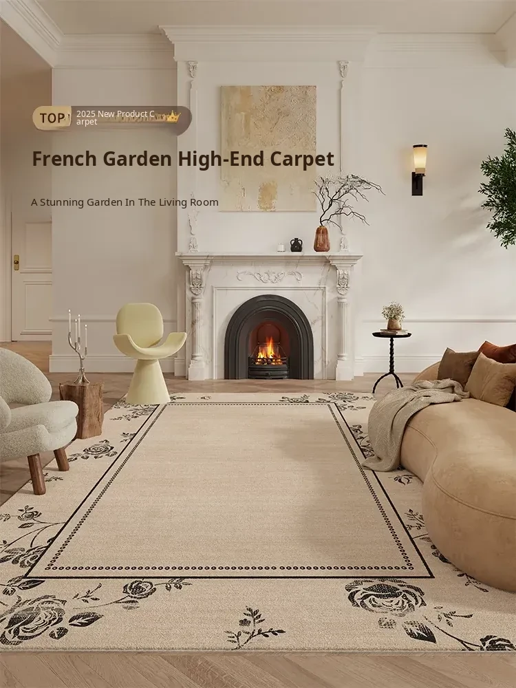 2026 New Luxury Vintage Cream Carpet for Living Room and Bedroom - Effortless, Washable, High-End Indoor Mat for Home Décor