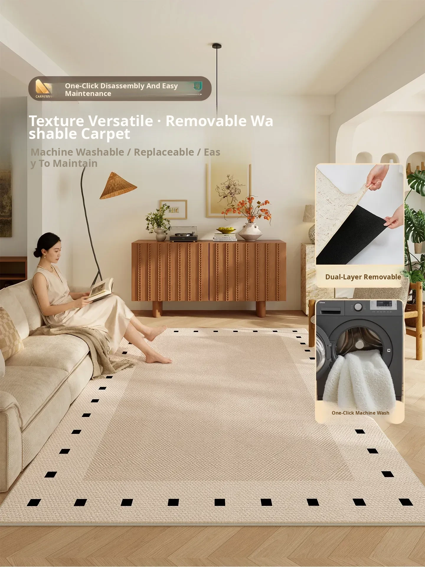 2026 New Luxury Washable Area Rug - Removable and Easy to Clean, Perfect for Living Room and Bedroom Sofa Décor, Hassle-Free Maintenance