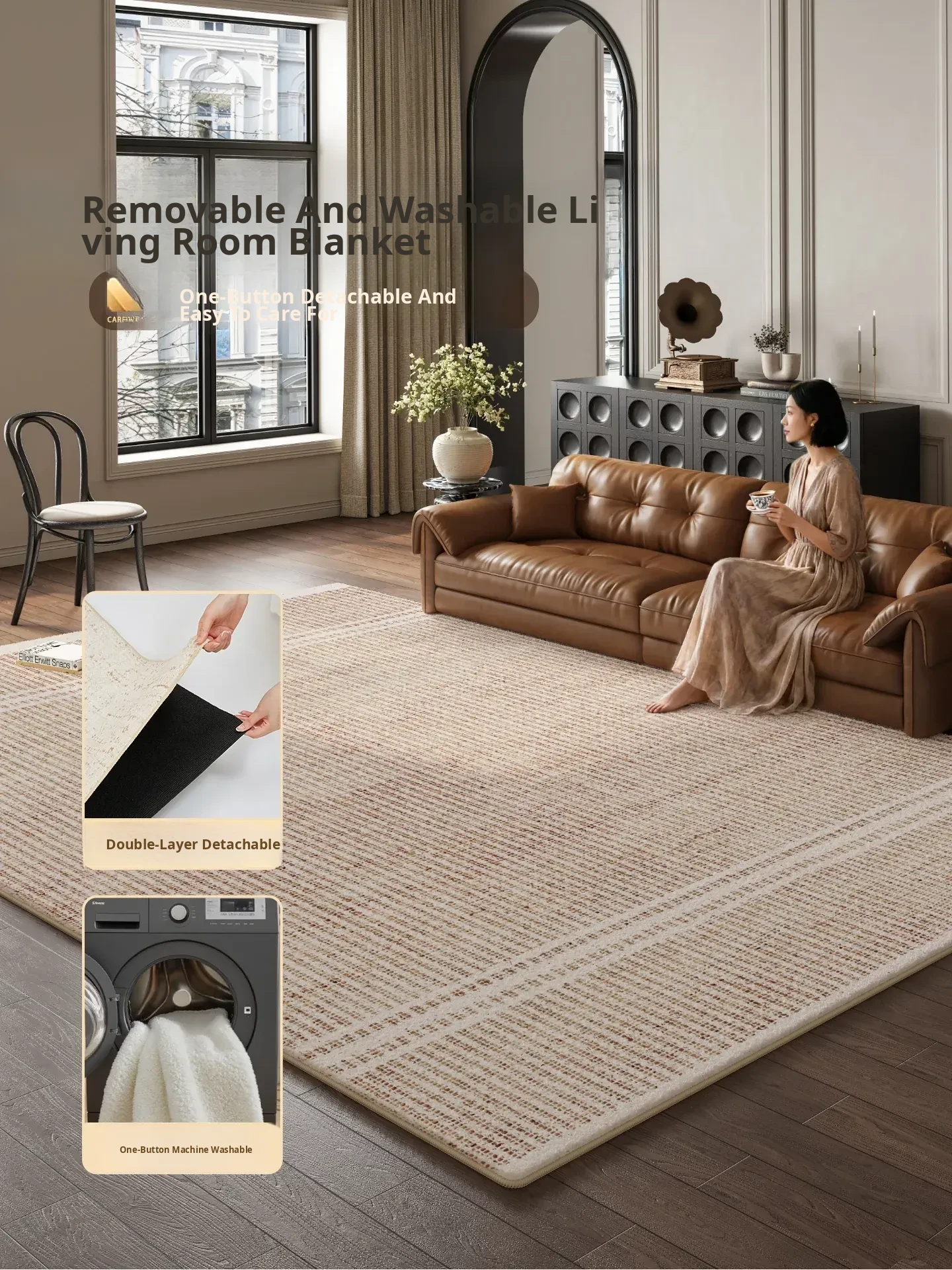 2026 New Style Removable and Washable Carpet for Living Room - Machine Washable, Foldable, Vintage Waterproof Sofa Mat, Easy to Clean and Maintain