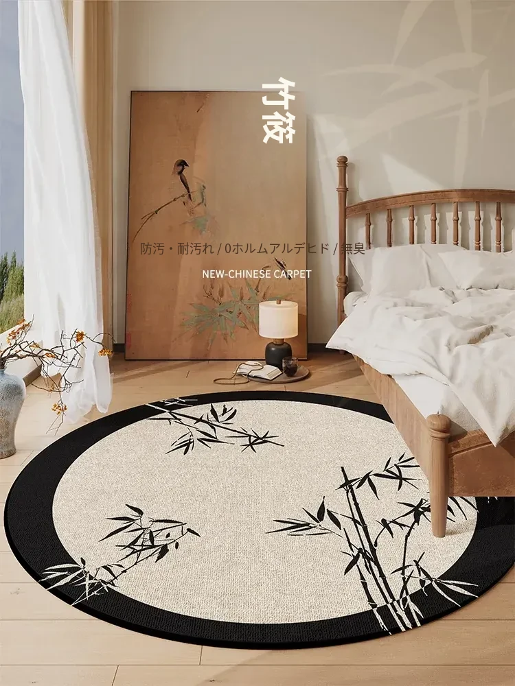 防水・防汚!シンプルでおしゃれな円形ラグマット - 寝室やリビングにぴったり!厚手で快適なソファや書斎用、ベッドサイドにも最適な日本風デザイン。あなたの空間を素敵に彩ります!