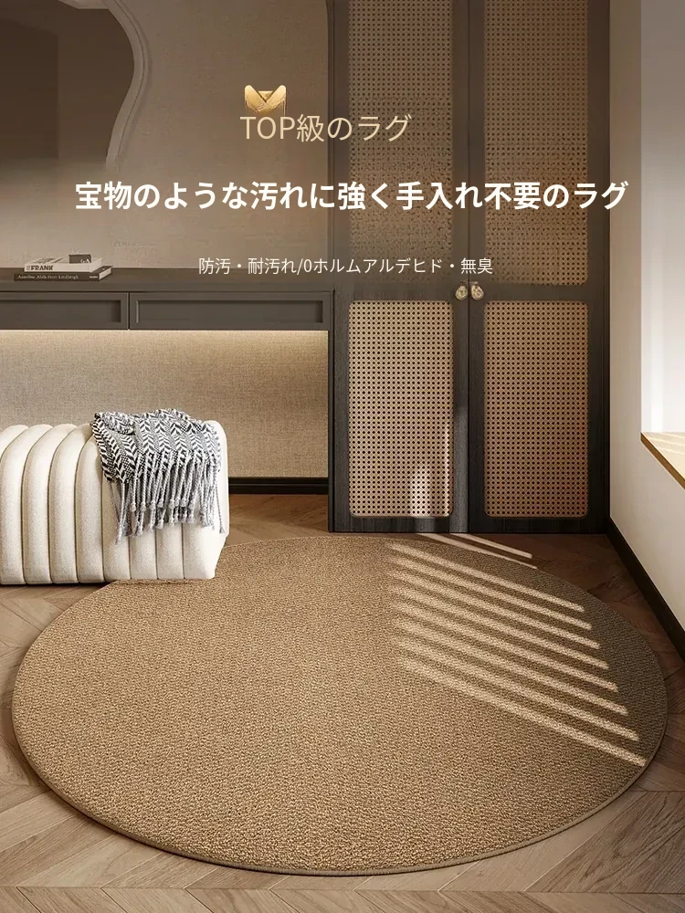 2026年新作!お手入れ不要のラグ・ラウンド型リビングマット。高級感溢れるデザインで寝室やリビングにもぴったり。洗濯不要で簡単に拭くだけ!おしゃれな空間を演出する必見アイテムです。