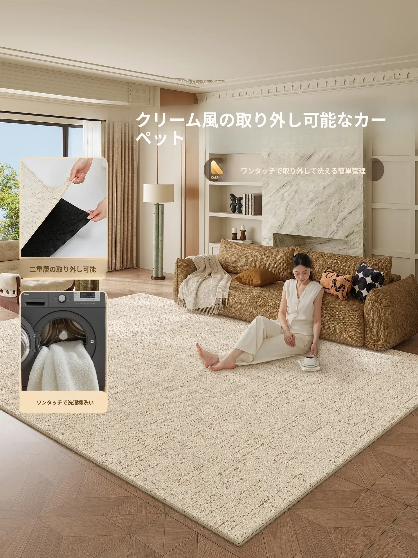 2026年新作!リビング・ベッドサイドに最適な大判カーペット!お手入れ簡単、ウォッシャブルで防水!家族みんなが快適に使える、広々とした空間を演出します。