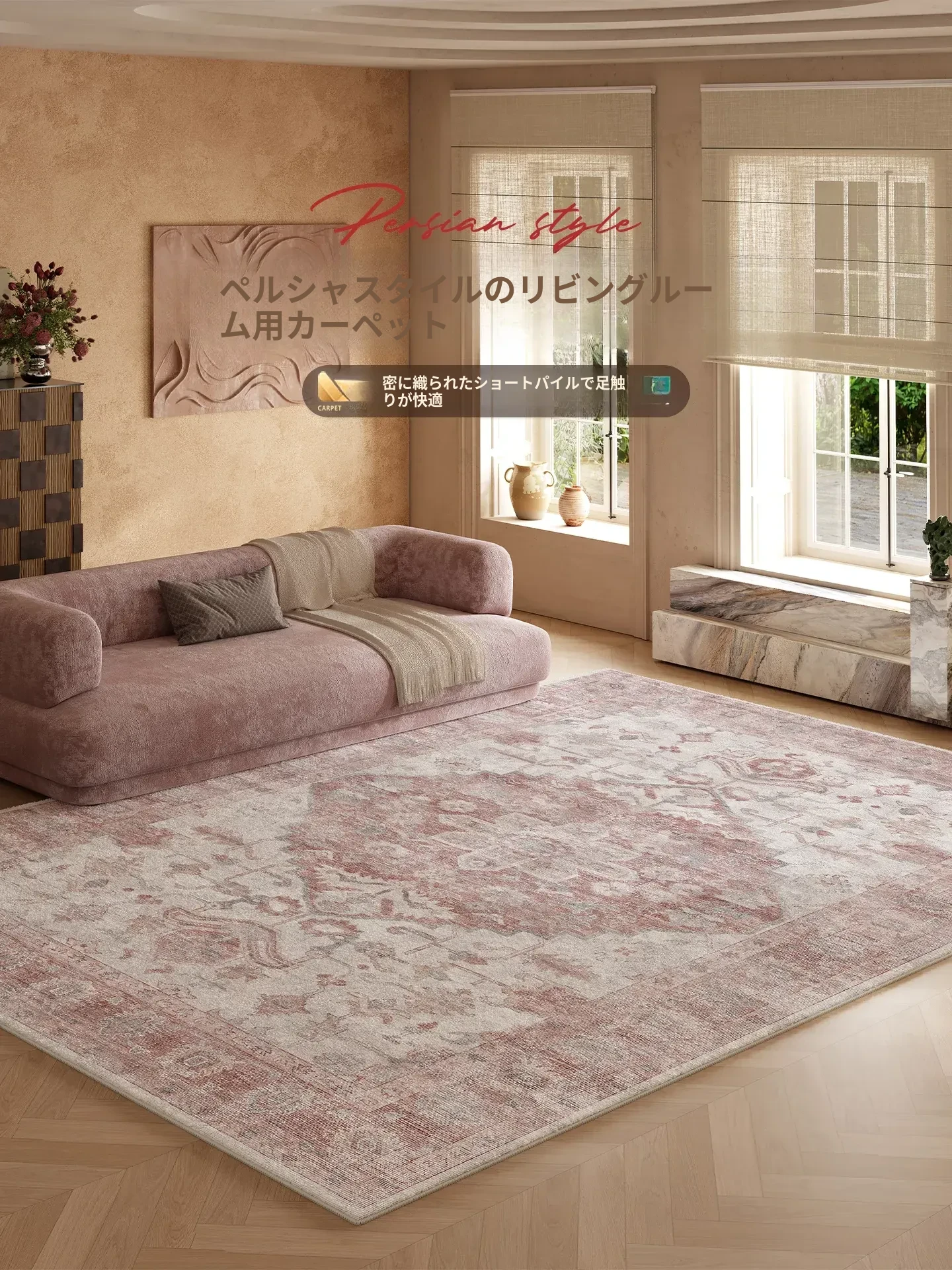 2026年新作!防水・洗浄不要のリビング用カーペット。寝室やソファ、テーブルにぴったりの高級感あふれるデザイン。天津発、手軽におしゃれな空間を演出!