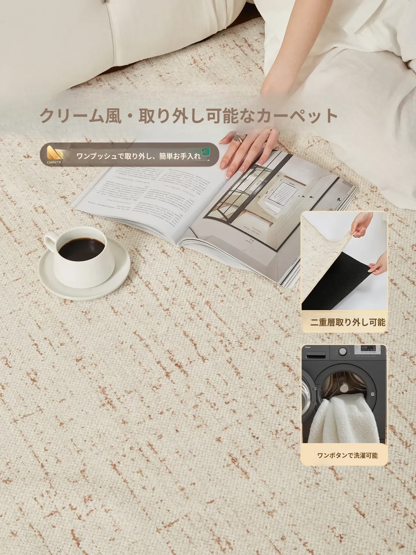 2026年新作!高級感溢れる軽奢スタイルの洗えるカーペット。リビングや寝室にぴったり!洗濯機で洗えるからお手入れ簡単、汚れもサッと拭き取れる!おしゃれで機能的なデザインをお楽しみください。