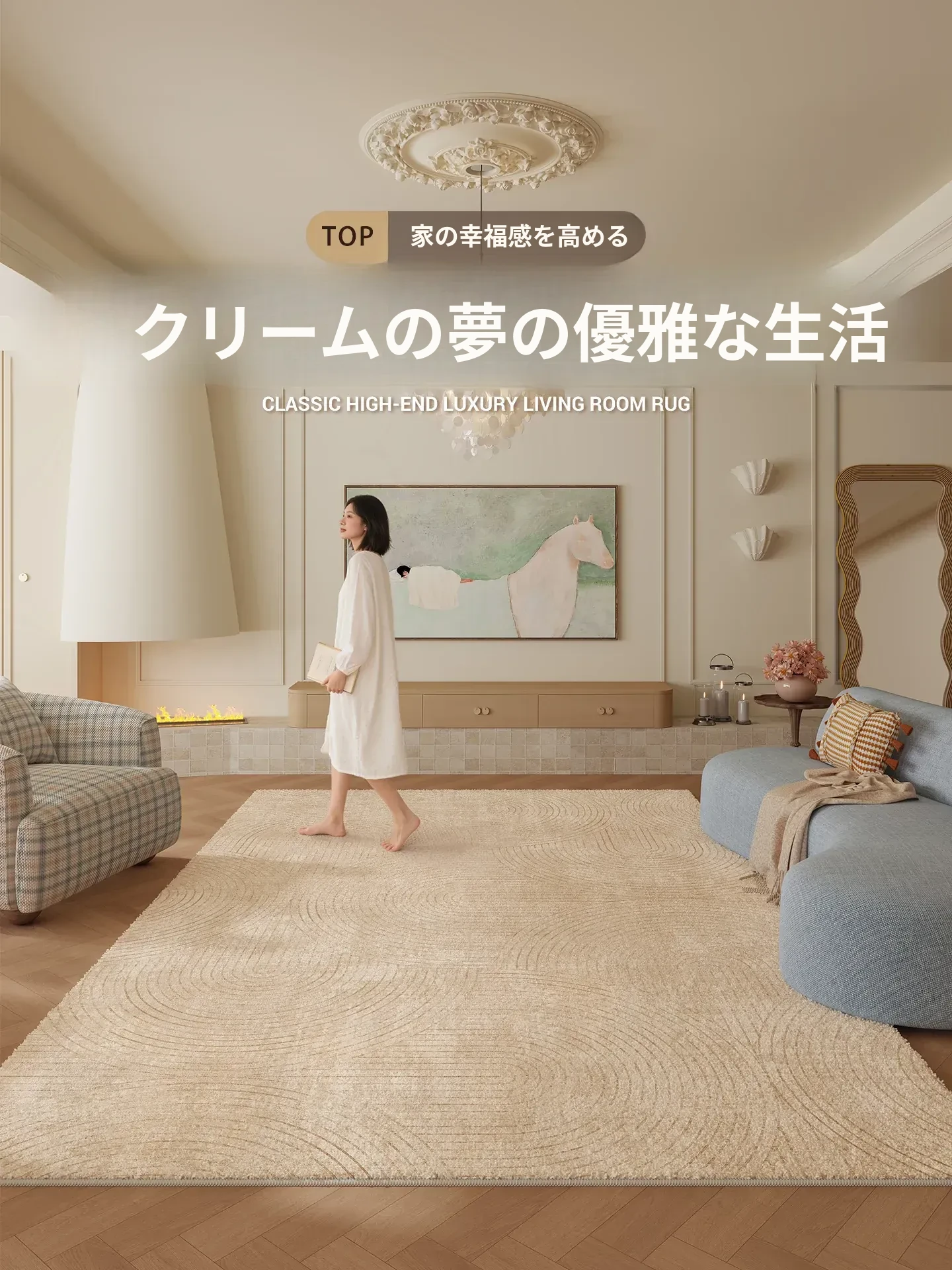 2026年新作!手入れ不要のラグマット - 高級感溢れるクリーム風デザイン。冬の寒さを和らげる厚手仕様、広いリビングにぴったりの快適さを実現!