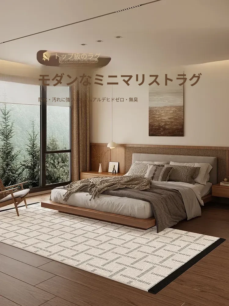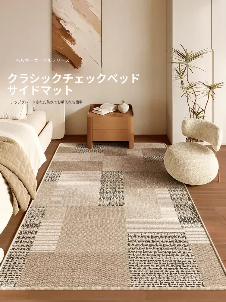 ベッドサイドラグ・寝室用カーペット・小香風デザイン・防水ベッドマット・和の美しさを感じる侘寂風・2026年新作登場!あなたの空間を優雅に演出します。