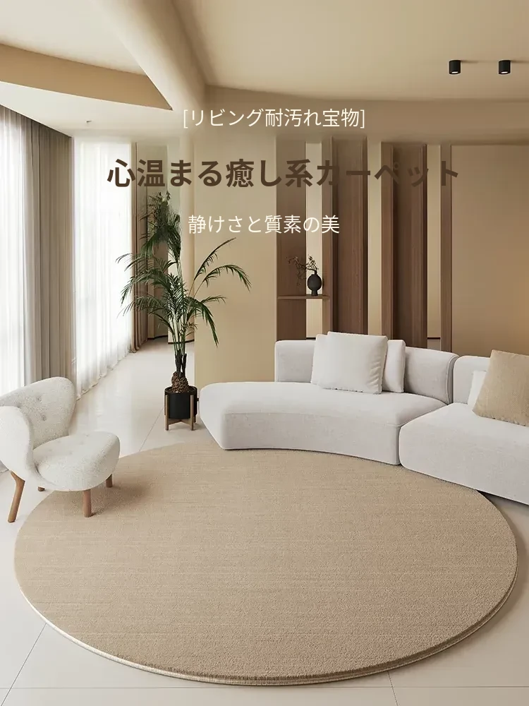 2026年新作!ラグジュアリー感漂う丸型カーペット - 寝室やリビングにぴったりのモダンでシンプルなデザイン。冬に最適な防水・防汚機能付きで、快適な空間を演出します!