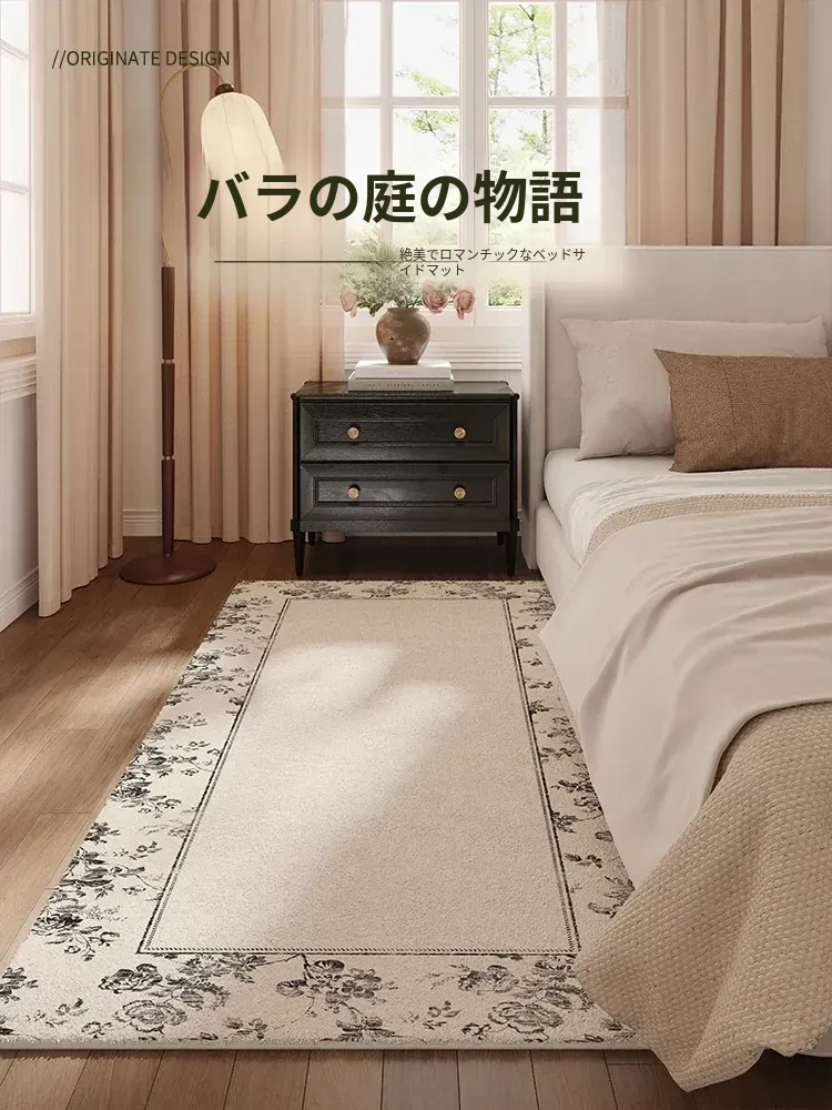 2026年新作!洗わずに使えるフレンチスタイルのベッドサイドマット。モダンでシンプルなデザイン、レトロな雰囲気を演出。リビングや寝室にぴったりな家庭用カーペット!