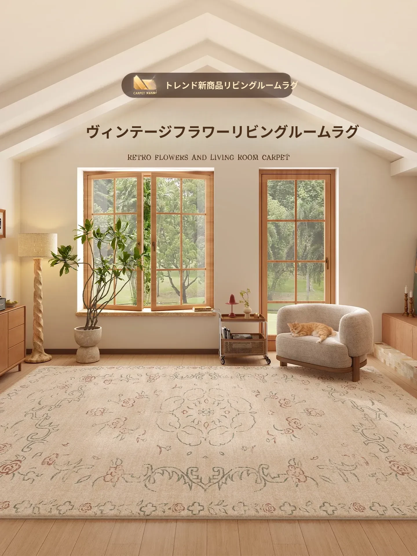 2026年新作!軽奢感あふれるリビングカーペット、洗浄不要の便利なデザイン。ヴィンテージ風のインテリアにぴったりな高級感溢れるルームマット。おしゃれな家庭用マットで、居心地の良い空間を演出します!