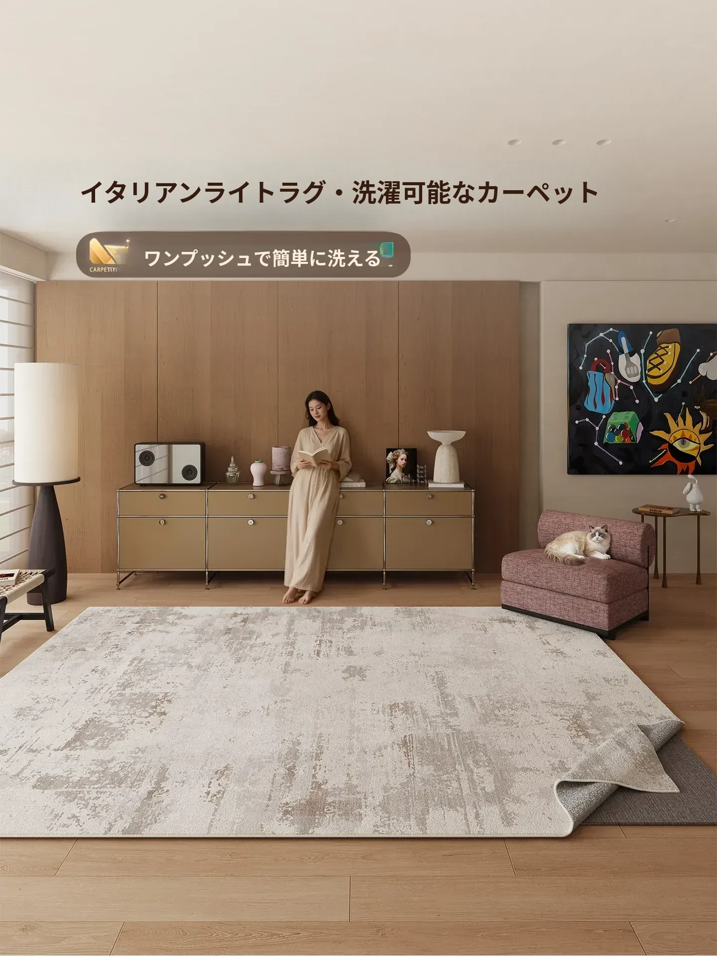2026年新作!高級感溢れるリビング・寝室用大面積カーペット。お手入れ簡単・洗濯不要で、天津の家にぴったりのスタイリッシュなインテリアアイテム!