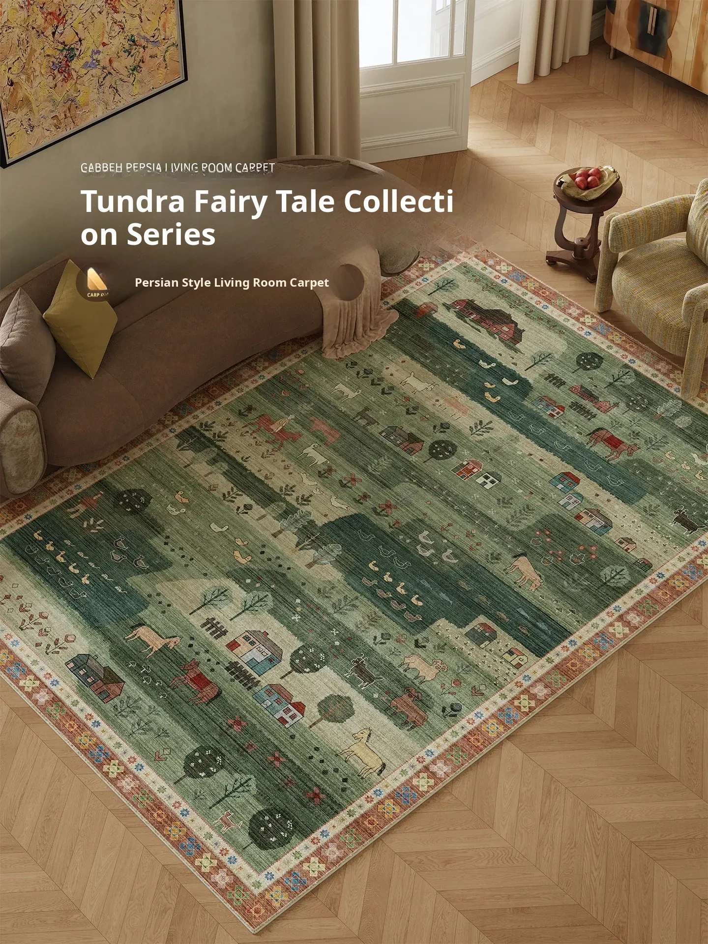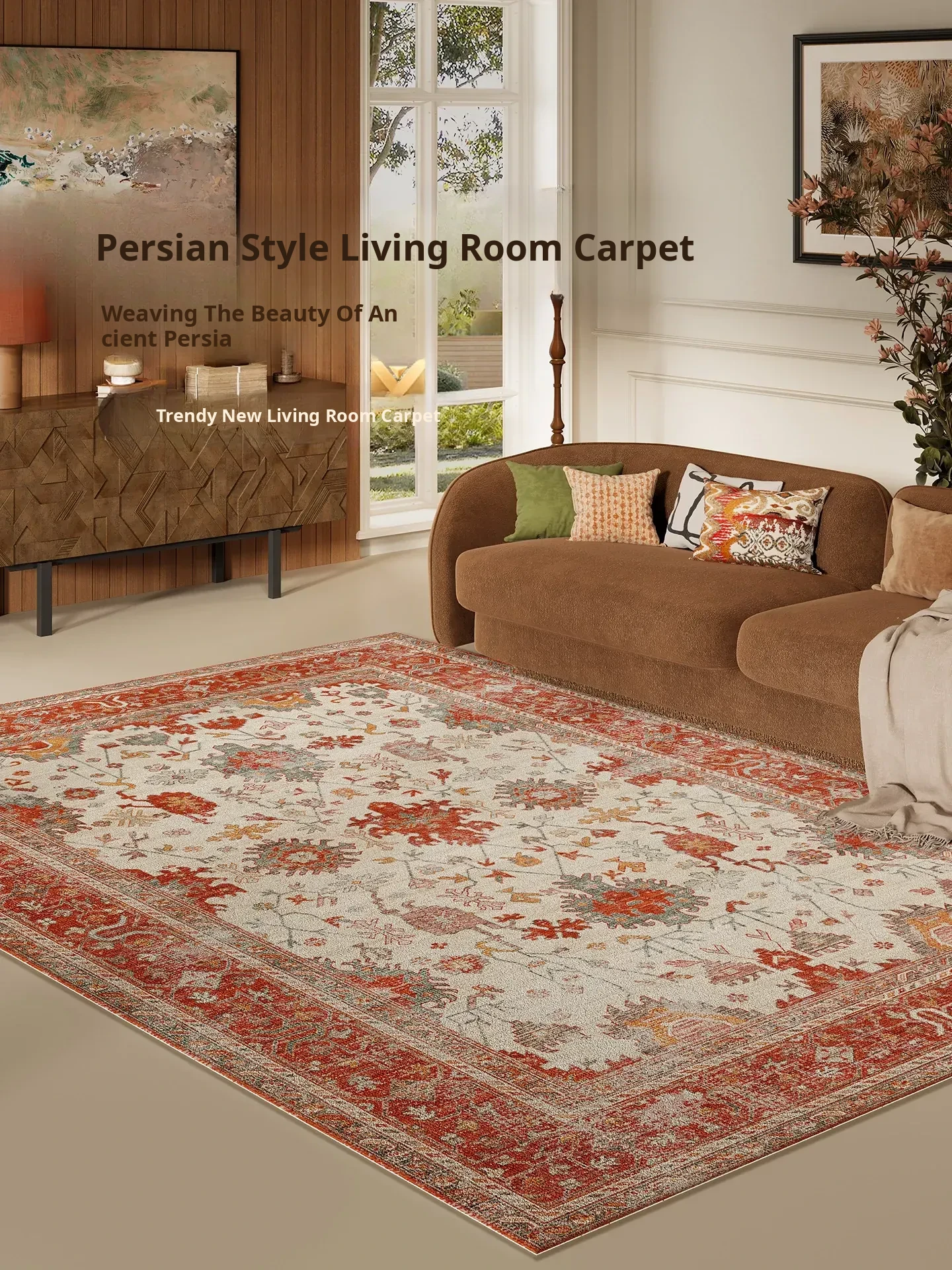 2026 New Vintage Style Luxury Living Room Carpet - Low Maintenance, Easy Clean Area Rug for Bedroom and Sofa, No Washing Required