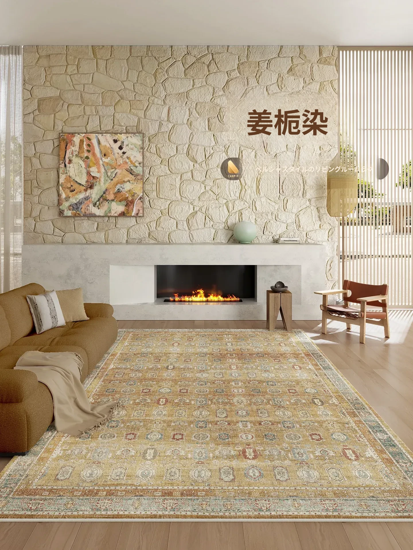2026年新作!波斯風ヴィンテージデザインのクリーム色カーペット - お手入れ簡単、洗わずに使える高級感あふれるリビングルームや寝室に最適なインテリア!