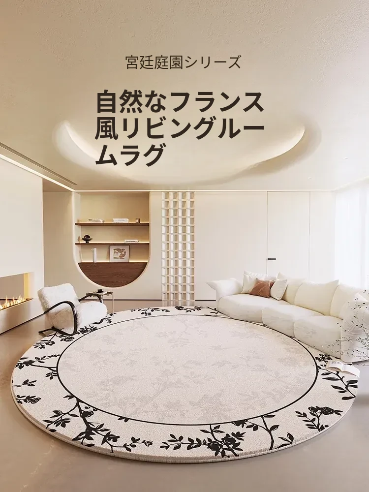 2026年新作!フレンチスタイルのラグ - 丸型デザインで高級感溢れるリビングや寝室にぴったり!ヴィンテージ感漂うベッドサイドマットで、家の中に優雅さをプラス。
