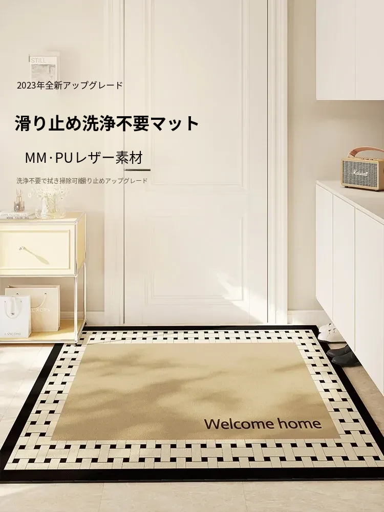 玄関用洗えるPVCマット - お手入れ簡単!カット可能なレザー調玄関マットで、清潔感あふれる入室空間を演出。どんなスタイルにもぴったりフィット!