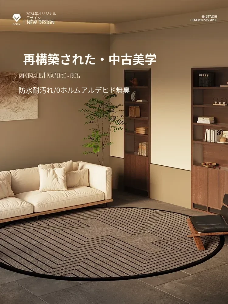 防水・防汚!シンプルでおしゃれな円形ラグマット - 寝室やリビングにぴったり!厚手で快適なソファや書斎用、ベッドサイドにも最適な日本風デザイン。あなたの空間を素敵に彩ります!