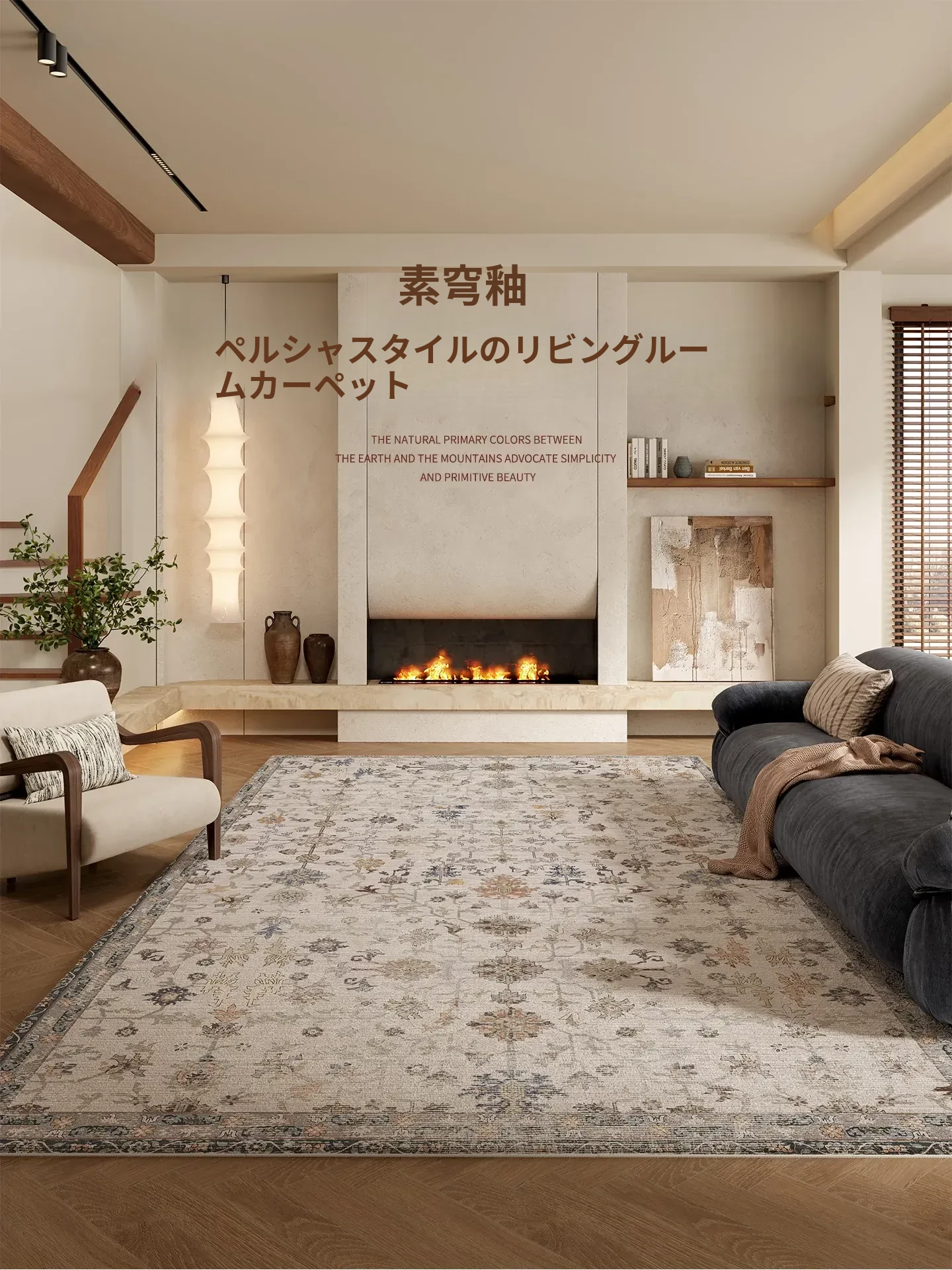 2026年新作!波斯風ヴィンテージデザインのクリーム色カーペット - お手入れ簡単、洗わずに使える高級感あふれるリビングルームや寝室に最適なインテリア!