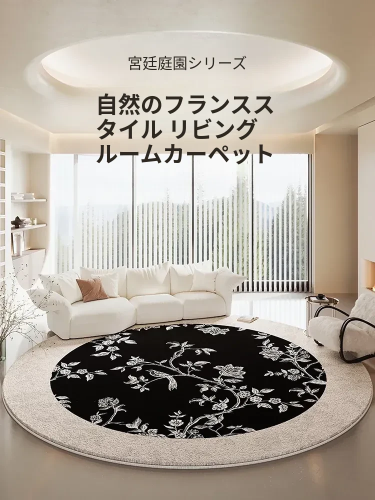 2026年新作!ラグジュアリー感あふれる円形カーペット - リビングやベッドサイドに最適!お手入れ簡単、洗わずに拭くだけで清潔感をキープ。おしゃれで快適な空間を演出する家庭用マット。